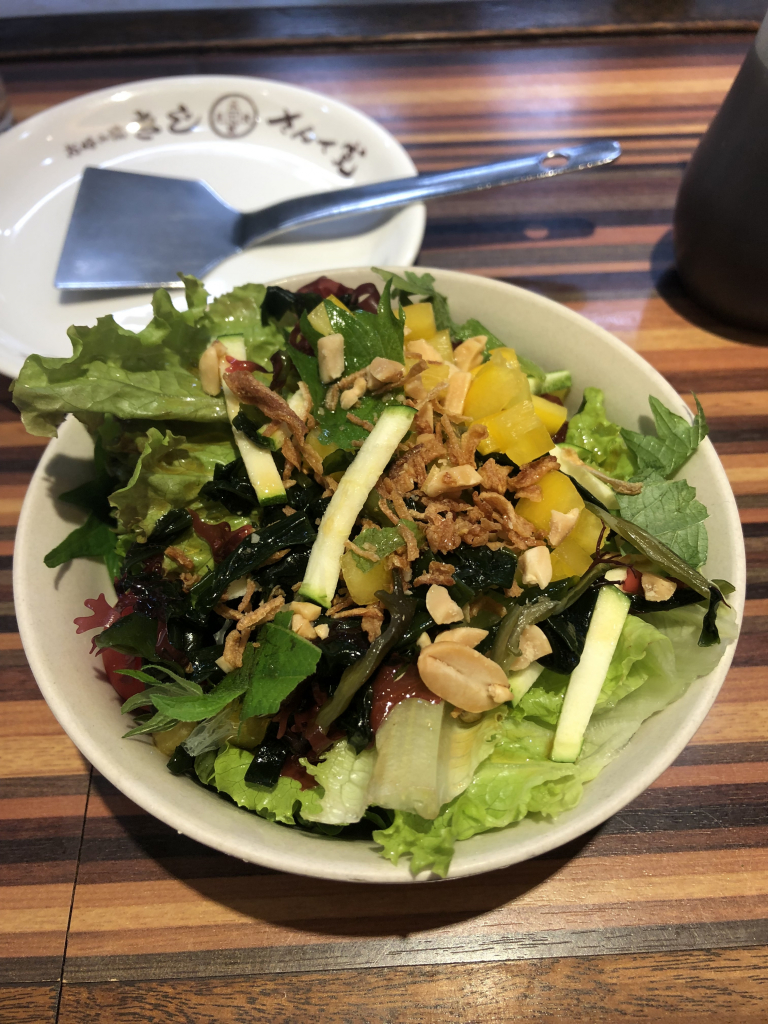 サラダは5分ほどで到着。 結構ボリュームありで野菜の種類も多く、これで300円なら納得です。